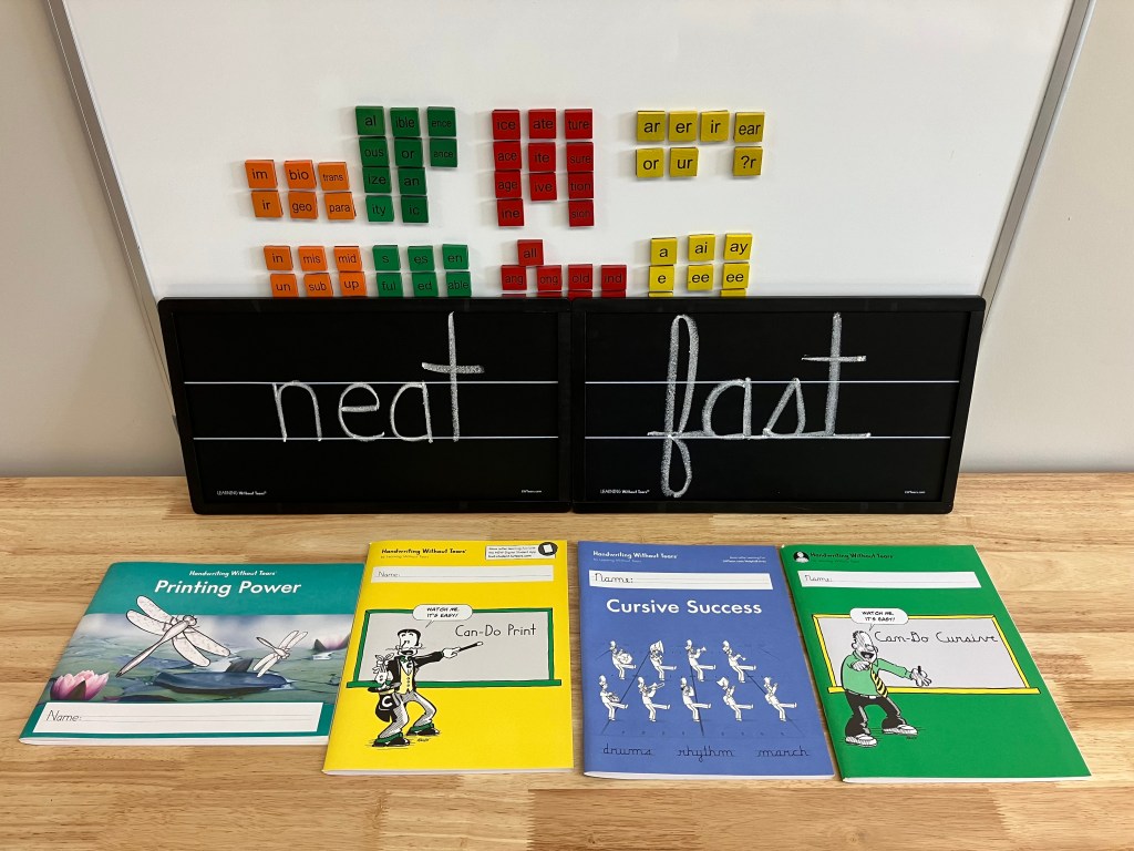 Handwriting Without Tears is designed to improve one’s ability to handwrite in print or cursive with neat and fast results.